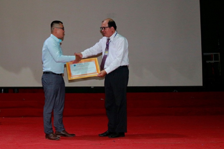 TS. Thái Công Dân trao giấy cảm tạ đến nhà tài trợ học bổng