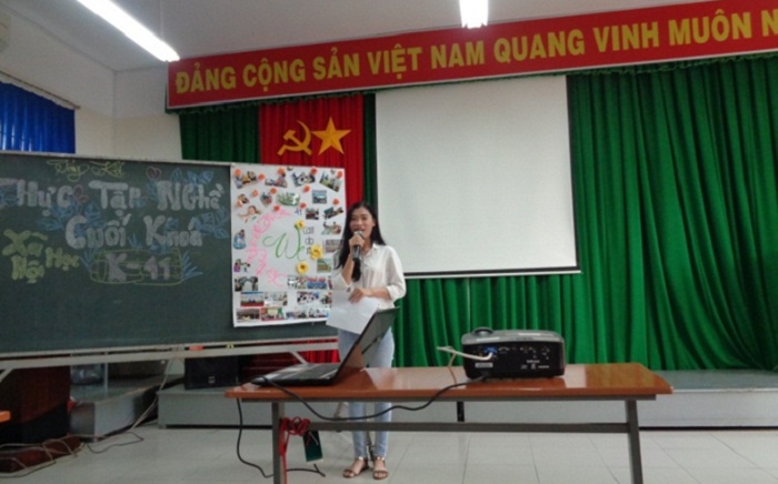 Sinh viên Huỳnh Như Ý, báo cáo đại diện nhóm thực tập tại các doanh nghiệp, sở ban ngành