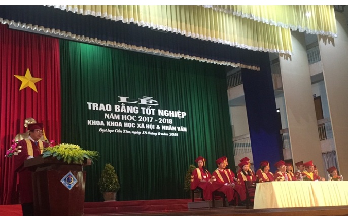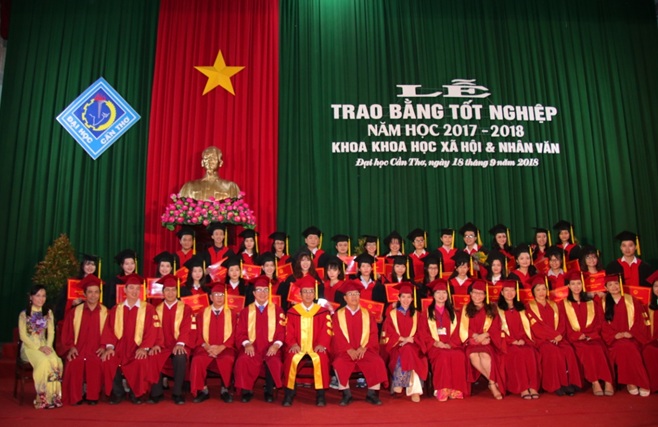 Thực hiện Kế hoạch Phát bằng tốt nghiệp của Trường Đại học Cần Thơ, đợt tháng 9 năm 2018, ngày 18 tháng 9 năm 2018, Khoa Khoa học Xã hội và Nhân văn đã tổ chức Lễ trao bằng Tốt nghiệp cho 211 sinh viên đại học hệ chính quy thuộc các ngành: Văn học, Việt Nam học (Hướng dẫn viên Du lịch) và Thông tin học vừa tốt nghiệp năm 2018. Đến dự lễ trao bằng tốt nghiệp về phía Ban giám hiệu có PGS.TS.Trần Trung Tính – Phó hiệu trưởng nhà trường; Về phía các đơn vị trong trường đến tham dự lễ gồm có: Ông Nguyễn Kỳ Tuấn Sơn (Phó phòng Đào tạo); Ông Trần Thiện Bình (Ủy viên thường vụ Đảng ủy, Trưởng phòng Công tác Chính trị), Ông Phan Quang Vinh (Phó phòng Công tác Sinh viên) và Ông Nguyễn Thanh Duy (Phó Bí thư Đoàn trường). Về phí Khoa có PGS.TS.Đào Ngọc Cảnh (Bí thư Đảng ủy Khoa), TS.Thái Công Dân (Trưởng khoa), PGS.TS.Nguyễn Kim Châu (Phó trưởng Khoa), TS.Bùi Thanh Thảo (Phó trưởng khoa), quý Thầy/Cô là Trưởng, Phó các Bộ môn, giảng viên thuộc Khoa Khoa học Xã hội và Nhân văn cùng 211 sinh viên tốt nghiệp, quý phụ huynh và sinh viên các khóa đến tham dự.