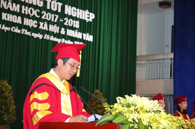 Thay mặt Ban Giám hiệu, PGS.TS.Trần Trung Tính (Phó hiệu trưởng) phát biểu chào mừng các tân cử nhân, đánh giá cao kết quả học tập của sinh viên, đồng thời chúc mừng thầy và trò Khoa Khoa học Xã hội và Nhân văn đã nổ lực phấn đấu để đạt được kết quả cao như hôm nay.