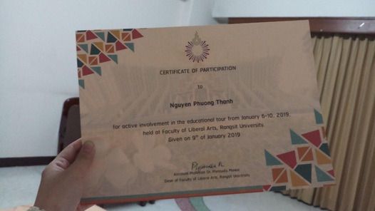 Hình 9. Giấy chứng nhận chuyến Fieldtrip, Thái Lan