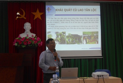 Trong khuôn khổ của Dự án KH&CN cấp Thành phố: “Phát triển mô hình du lịch cộng đồng tại thành phố Cần Thơ” do PGS.TS. Đào Ngọc Cảnh là Chủ nhiệm, Trường Đại học Cần Thơ là cơ quan chủ trì, ngày 10/7/2019 tại Hội trường Khoa KHXHNV đã diễn ra Hội thảo khoa học “TIỀM NĂNG VÀ ĐỊNH HƯỚNG PHÁT TRIỂN DU LỊCH CỘNG ĐỒNG TẠI CÙ LAO TÂN LỘC, QUẬN THỐT NỐT, TP.CẦN THƠ” nhằm lấy ý kiến trao đổi về tiềm năng du lịch và định hướng xây dựng mô hình du lịch cộng đồng ở cù lao Tân Lộc, quận Thốt Nốt, TP.Cần Thơ.