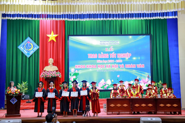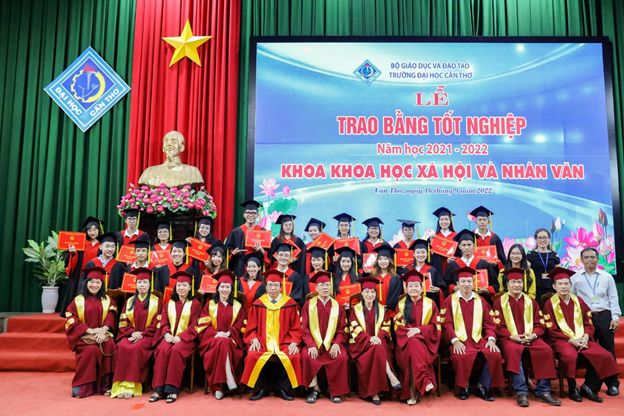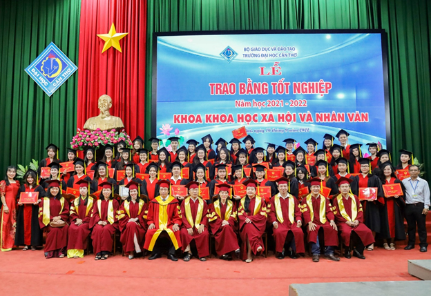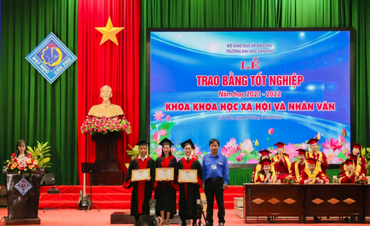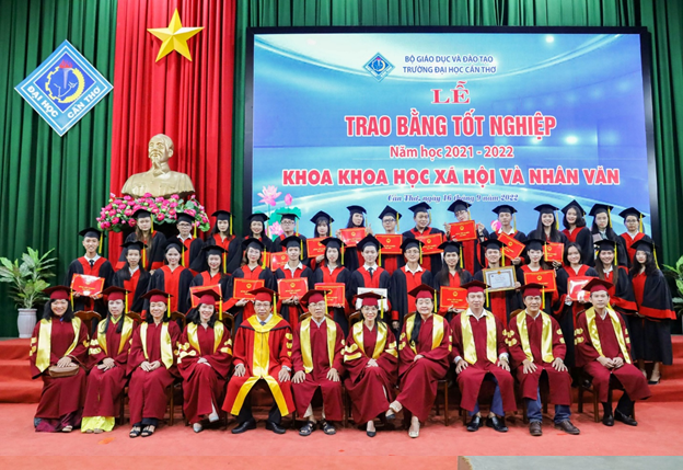 Thực hiện kế hoạch đào tạo và kế hoạch tổ chức lễ trao bằng cho sinh viên tốt nghiệp, sáng ngày 16/9/2022 vừa qua, tại Hội trường Rùa trường Đại học Cần Thơ, Khoa KHXH&NV đã long trọng tổ chức Lễ trao bằng tốt nghiệp cho 155 tân khoa thuộc các ngành Văn học, Việt Nam học, Thông tin học, Xã hội học.