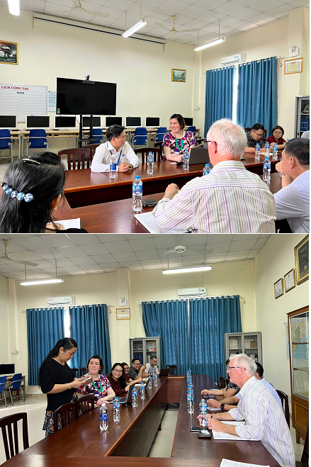 Khoa KHXH &NV đã có buổi làm việc hiệu quả với trường Đại học New England- Úc, do Phó giáo sư Tiến sĩ Paul Erik Kristiansen làm trưởng đoàn vào sáng ngày 19/05/ 2023. Về phía khoa KHXH & NV, tiến sĩ Huỳnh Văn Đà- phó trưởng khoa cùng các thầy cô trong khoa đã trao đổi thông tin chung với đoàn khách. Ngoài ra, hai bên cũng trao đổi các thông tin cụ thể về chuyên môn và định hướng hợp tác giữa hai bên nhằm làm tăng sự gắng kết giữa hai đơn vị trong lần gặp gỡ này. Sau buổi làm việc, hai bên có sự thống nhất cao về sự hợp tác trong thời gian tới cũng như sự hỗ trợ qua lại giữa hai đơn vị. Một số hình ảnh của buổi tiếp toàn.