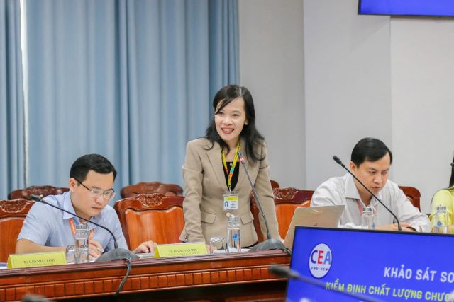 Tại buổi khảo sát, Đoàn chuyên gia đánh giá ngoài đã tiến hành kiểm tra sơ bộ các hồ sơ minh chứng, tham quan cơ sở vật chất như: các phòng làm việc, phòng phỏng vấn, hội trường, trung tâm học liệu, hệ thống công nghệ thông tin, nhà thi đấu, … và cơ sở vật chất của các đơn vị có CTĐT được đánh giá.