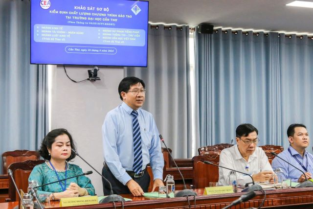 Ngày 28/08/2024, Đoàn chuyên gia đánh giá ngoài chương trình đào tạo (CTĐT) do Trung tâm Kiểm định chất lượng giáo dục (KĐCLGD) thuộc Đại học Quốc gia thành phố Hồ Chí Minh (ĐHQG TPHCM) đã đến khảo sát sơ bộ tại Trường Đại học Cần Thơ (ĐHCT) để phục vụ cho đợt khảo sát chính thức đánh giá ngoài 6 CTĐT gồm 2 ngành trình độ thạc sĩ Luật kinh tế, Văn học Việt Nam và 4 ngành trình độ đại học Thông tin - Thư viện, Sư phạm Tiếng Pháp, Kinh tế và Tài chính - Ngân hàng.