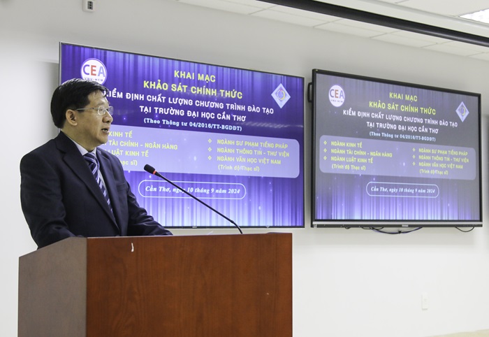 Sáng ngày 10 tháng 09 năm 2024, tại Toà nhà Công nghệ cao ATL, Trường Đại học Cần Thơ (ĐHCT), Lễ Khai mạc Khảo sát chính thức Kiểm định chất lượng chương trình đào tạo của 06 ngành, gồm trình độ Thạc sĩ và Đại học. Đây là sự kiện quan trọng, được tiến hành theo qui định của Bộ Giáo Dục Và Đào Tạo, diễn ra định kì mỗi 5 năm đối với từng chương trình đào tạo. Kết quả kiểm định là một trong những tiêu chuẩn quan trọng, góp phần khẳng định chất lượng đào tạo và nâng cao uy tín, vị thế của các đơn vị đào tạo.
