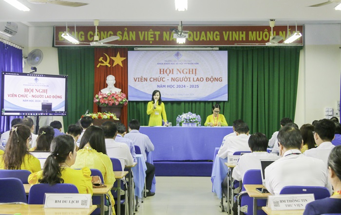 Tại Hội nghị, TS Bùi Thanh Thảo – Bí thư Đảng uỷ, Trưởng Khoa KHXH&NV đã trình bày Báo cáo Tổng kết hoạt động trong năm học vừa qua. Từ công tác đào tạo, kiểm định nâng cao chất lượng, nghiên cứu khoa học (NCKH), hợp tác Quốc tế (HTQT) đến công tác Công đoàn và Đoàn Thanh niên. Nhất là nỗ lực đồng thời hoàn thành nhiều kế hoạch lớn trong năm:
