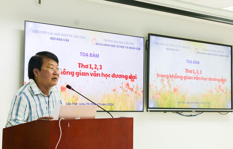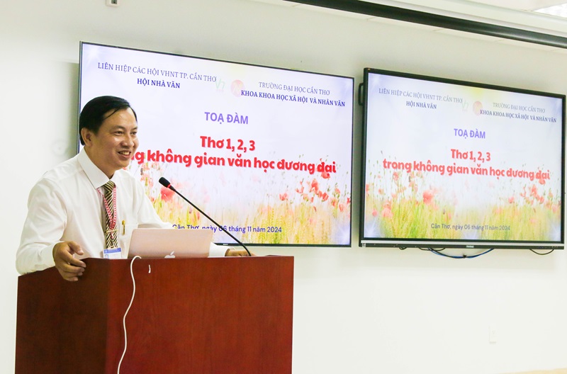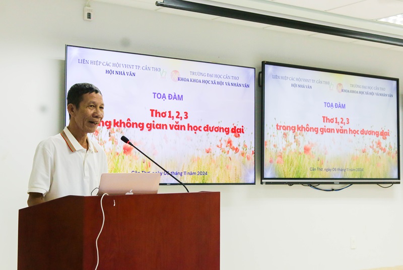 Ngày 06 tháng 11 năm 2024, tại Hội trường ATL (Toà nhà Công nghệ cao) - Khu II, Trường Đại học Cần Thơ diễn ra buổi toạ đàm với chủ đề: “Thơ 1,2,3 trong không gian văn học đương đại”, do Khoa Khoa học Xã hội & Nhân văn (Trường Đại học Cần Thơ) và Hội Nhà văn (Liên hiệp các hội VHNT TP. Cần Thơ) phối hợp tổ chức. Đây là buổi toạ đàm đầu tiên về thơ 1,2,3 - một thể thơ mới ra đời trong những năm gần đây nhưng ít nhiều đã tạo được hiệu ứng tích cực trên thi đàn đương đại, thu hút một bộ phận người sáng tác và nghiên cứu tiếp nhận.
