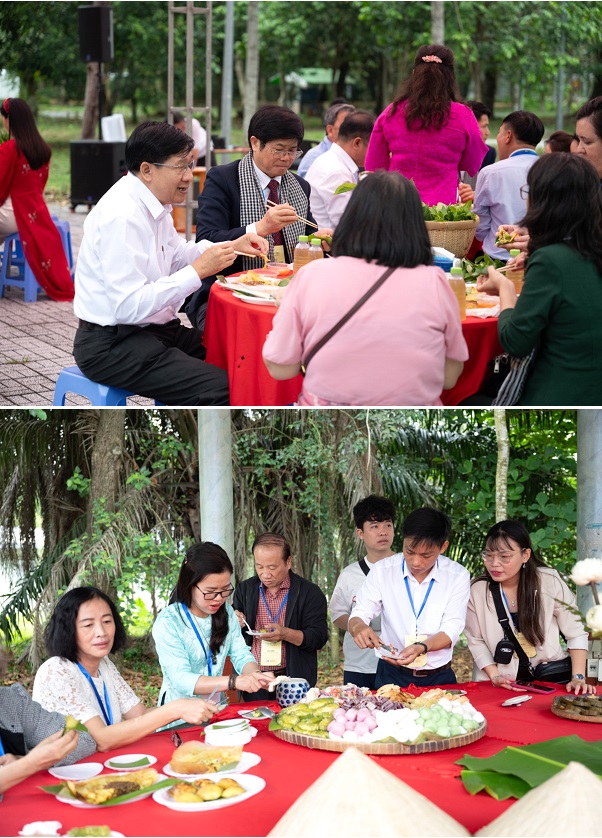 Vào lúc 11h30 tại Không gian Văn hoá Vườn bàng, diễn ra buổi Giao lưu trưng bày gian hàng bánh dân gian, trò chơi dân gian.