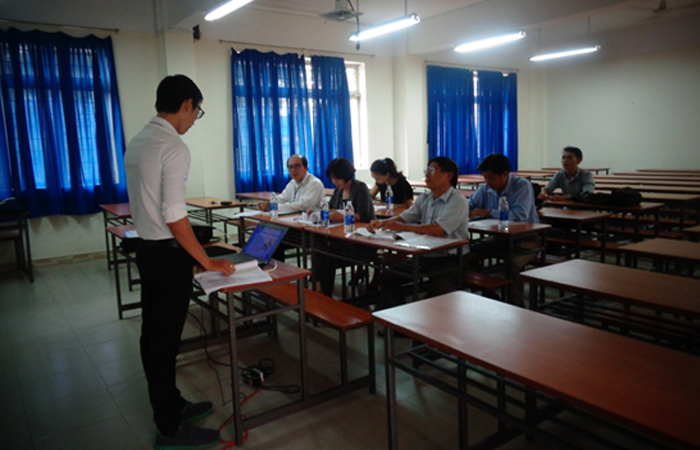 Hình 1: Sinh viên trình bày báo cáo đề tài NCKH trước Hội đồng nghiệm thu