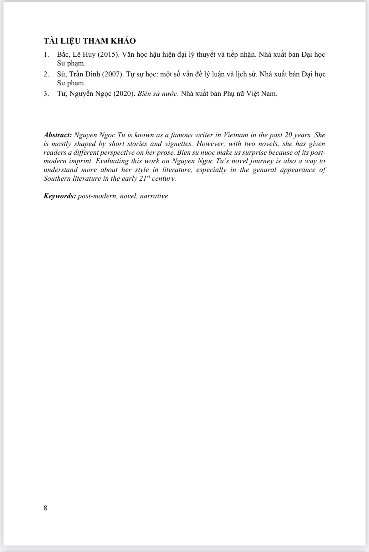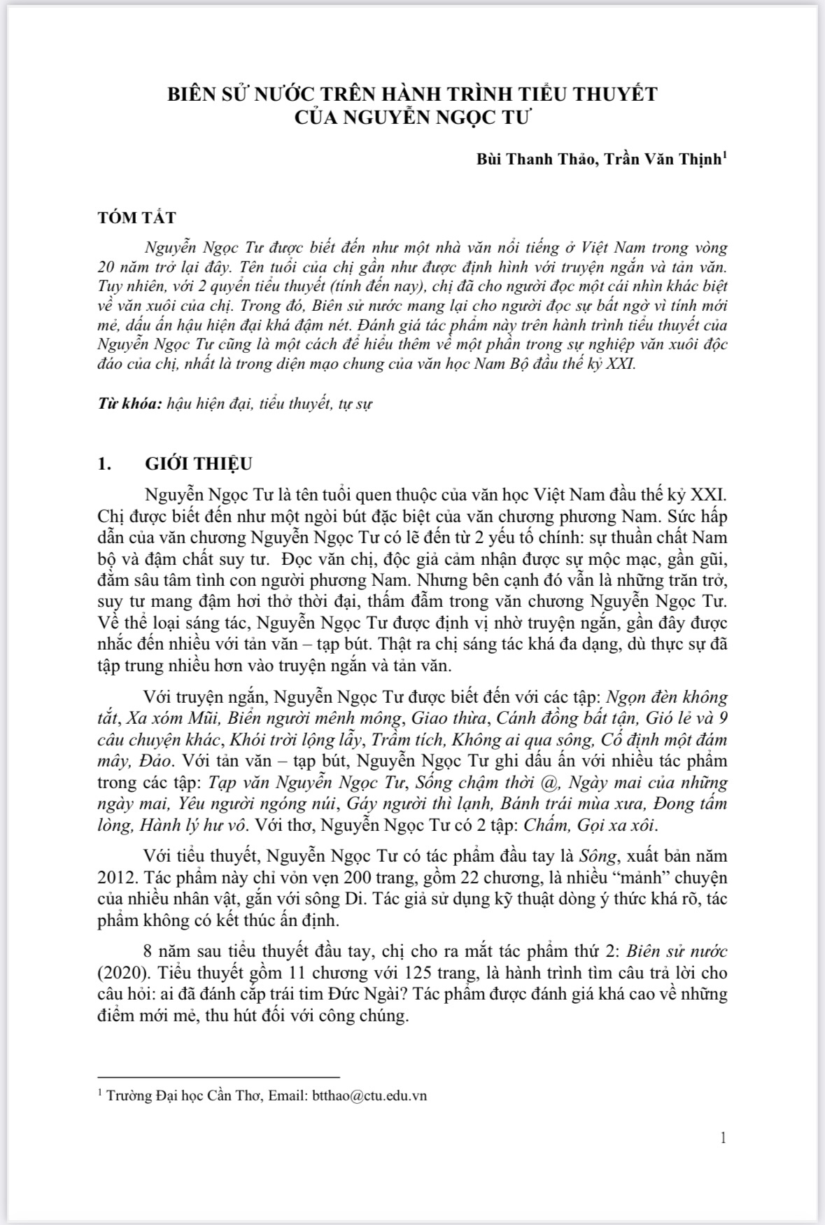 BIÊN SỬ NƯỚC TRÊN HÀNH TRÌNH TIỂU THUYẾT CỦA NGUYỄN NGỌC TƯ - TS. Bùi Thanh Thảo - TS. Trần Văn Thịnh (Giảng viên chính, Khoa KHXH & NV, Trường Đại học Cần Thơ)