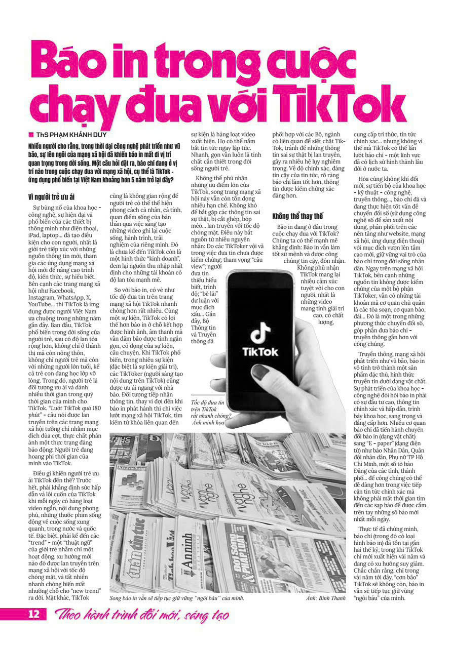 BÁO IN TRONG CUỘC CHẠY ĐUA VỚI TIKTOK - ThS. Phạm Khánh Duy (Giảng viên Bộ môn Ngữ văn, Khoa KHXH&NV, Trường Đại học Cần Thơ)