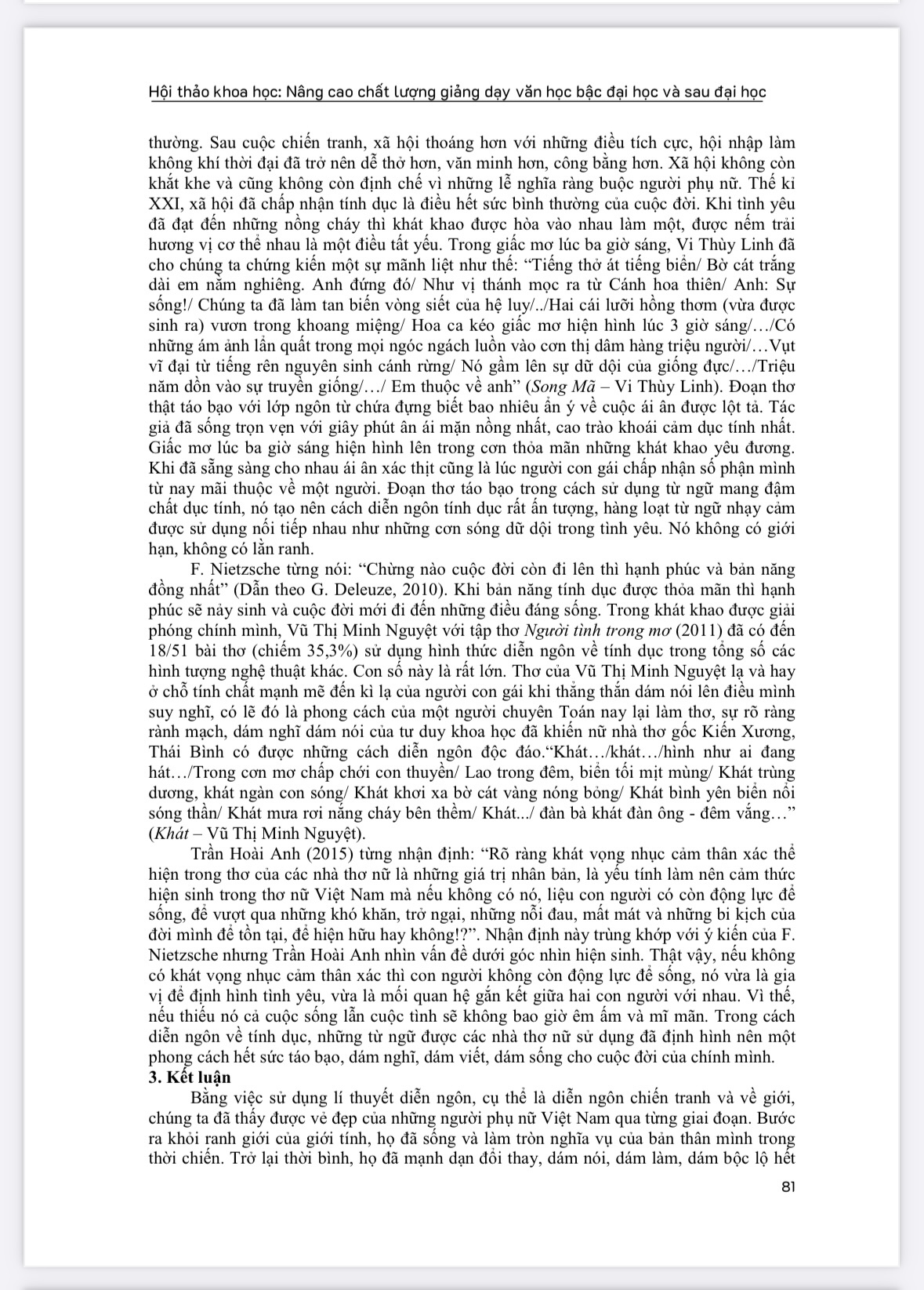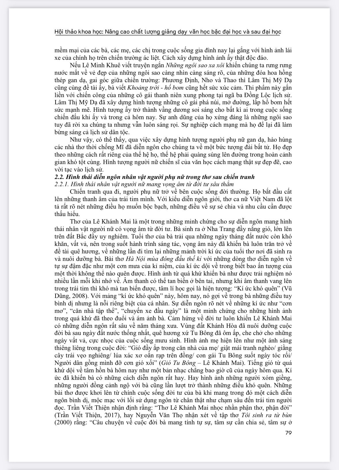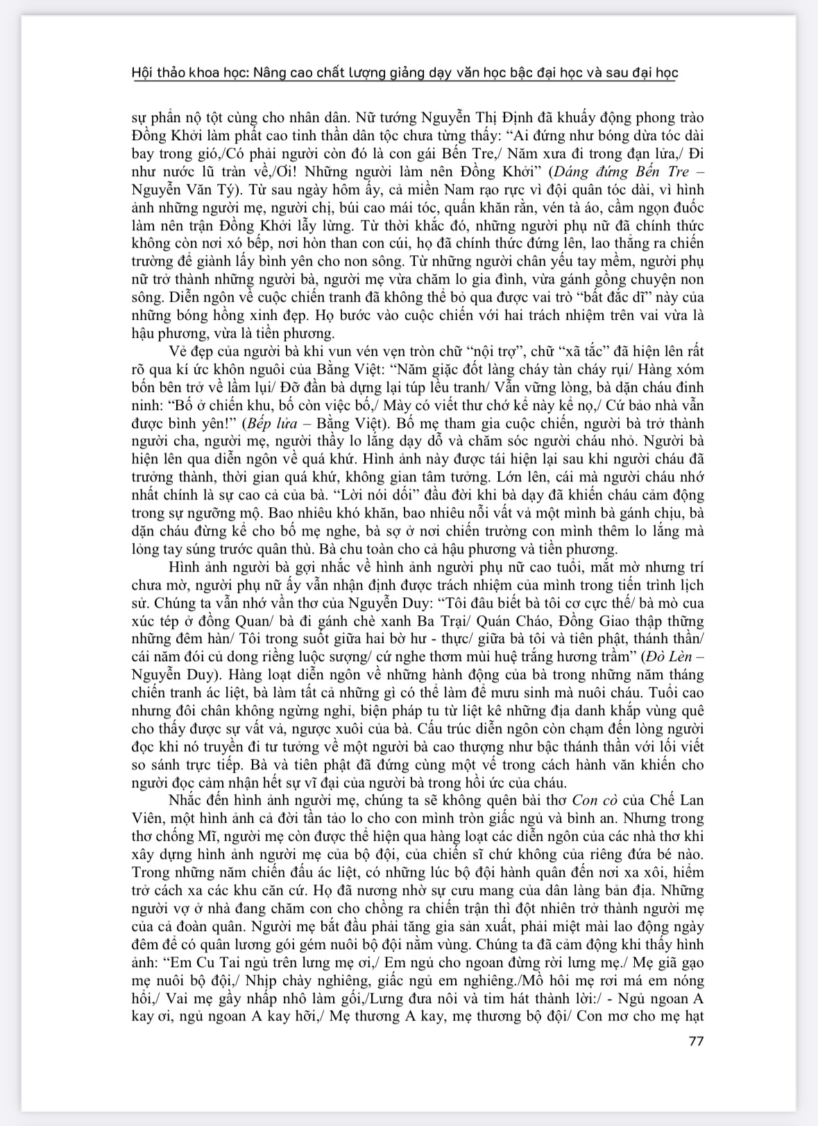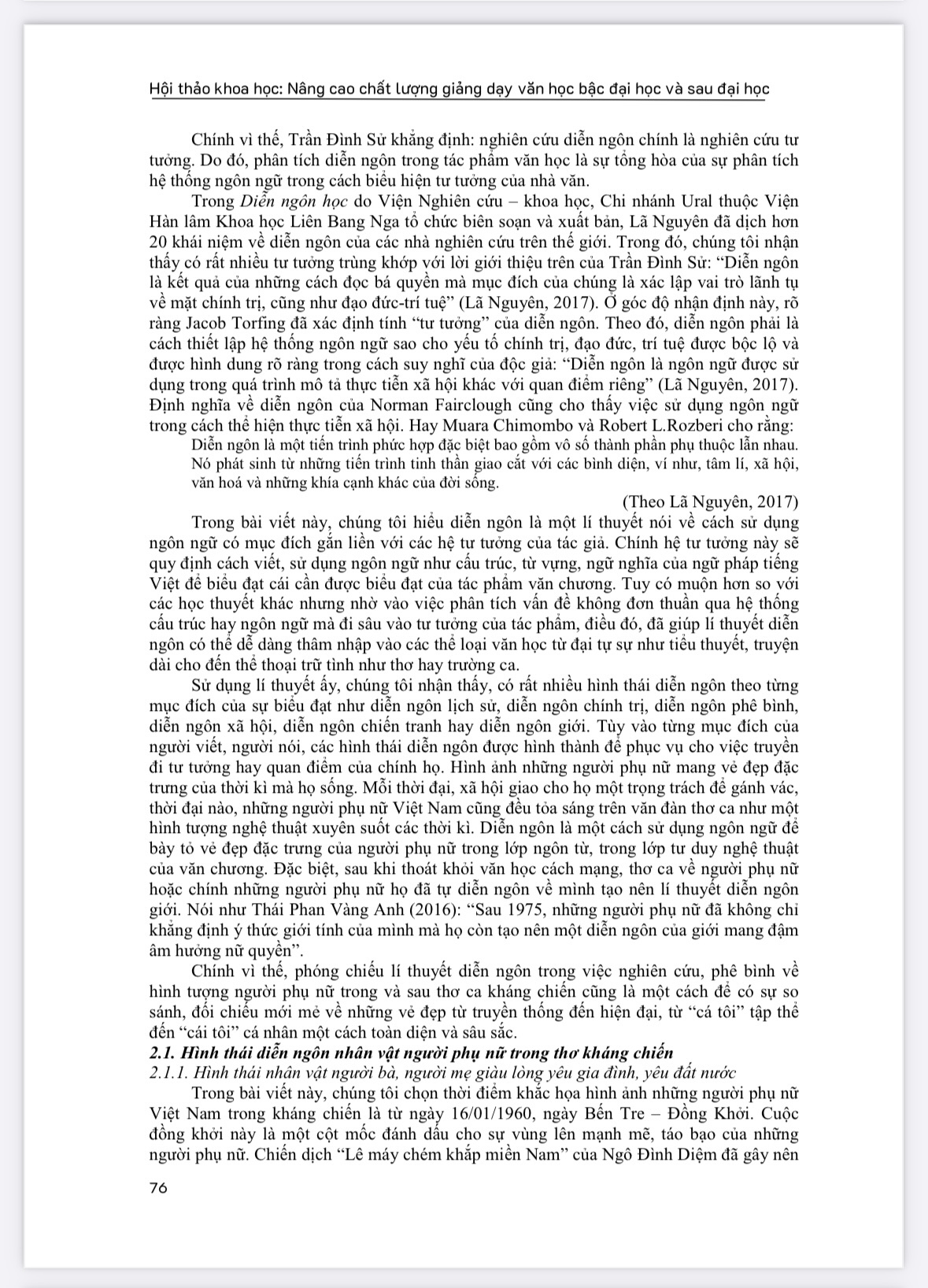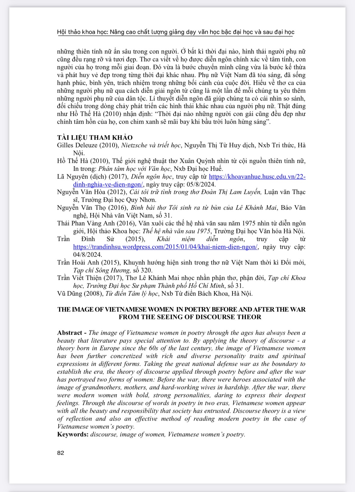 Kỷ yếu Hội thảo 01.12.2024: HÌNH TƯỢNG NGƯỜI PHỤ NỮ VIỆT NAM TRONG THƠ TRƯỚC VÀ SAU CHIẾN TRANH NHÌN TỪ LÍ THUYẾT DIỄN NGÔN - ThS. NCS. Võ Minh Nghĩa (Trường Đại học Văn Hiến)