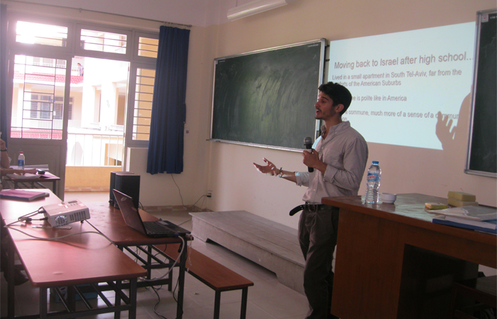 Receiving volunteers teaching English: In August 2014, School of Social Sciences and Humanities (Department of English) received a volunteer of Fulbright Program (USA) Mr. Ophir Haberer teaching English for classes of English major. Mr. Ophir Haberer actively participated in many cultural exchanged activities and introduced the American culture. On March 21st, 2015, Mr. Ophir connected with School to organize an advisory training skills and knowledge for the second-year students from English and Translation – Interpretation majors’ to guide them get on well with student life in Can Tho University.