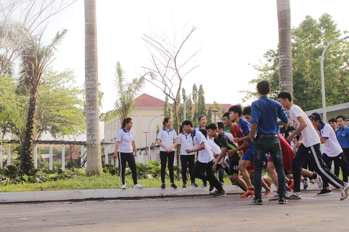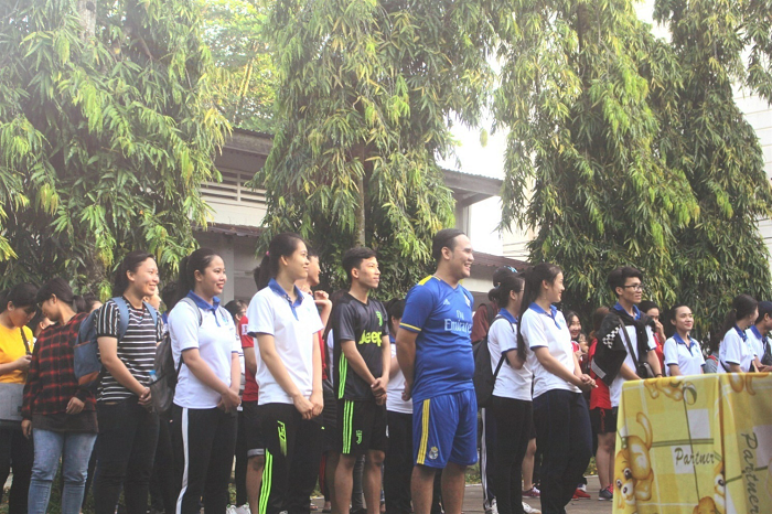Các vận động viên háo hức tham dự lễ khai mạc Hội thao truyền thống khoa KHXH&NV năm 2018. Ảnh: Anh Thư