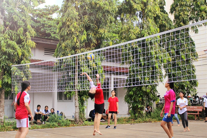 Đội Bóng chuyền nữ bộ môn Ngữ Văn (liên quân lớp Văn học 1 và Văn học 2 khóa 43) thi đấu cùng bộ môn Thông tin thư viện.