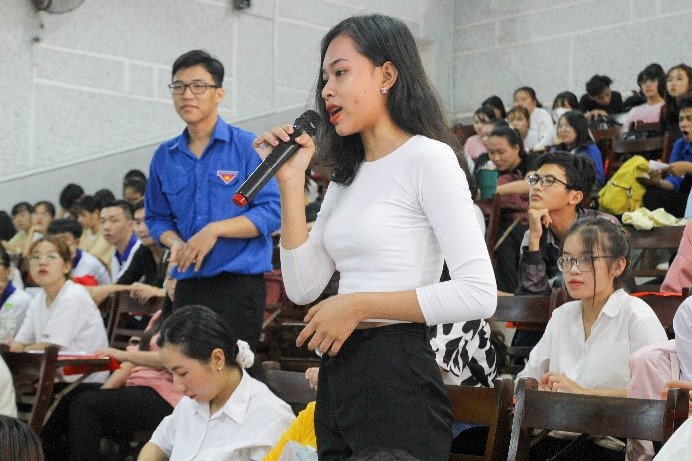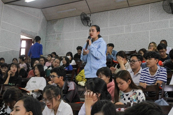 Sinh viên đặt câu hỏi thảo luận với diễn giả chương trình