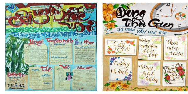 Hiện các tác phẩm báo tường đang được trưng bày tại sảnh Khoa Khoa học Xã hội và Nhân văn. Kính mời quý thầy cô và các bạn sinh viên ghé thăm để chiêm ngưỡng những tác phẩm tri ân sáng tạo và đầy cảm xúc.