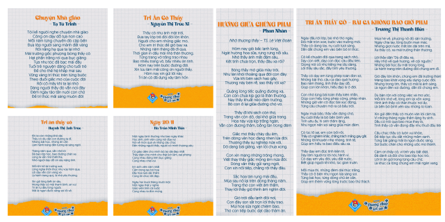 Thơ luôn là phương tiện tuyệt vời để sinh viên thể hiện cảm xúc và sự biết ơn một cách chân thành. Những hình ảnh giản dị về thầy cô, bục giảng, bảng đen hay những giờ học được thể hiện qua ngôn ngữ giàu cảm xúc, chạm đến trái tim người đọc. Đây không chỉ là lời cảm ơn dành cho thầy cô mà còn là những kỉ niệm gắn liền với thời gian, với hành trình học tập của các bạn sinh viên. Các bài thơ cho thấy sự phong phú trong cách biểu đạt và khả năng sáng tạo của sinh viên ngành Văn học và Báo chí.