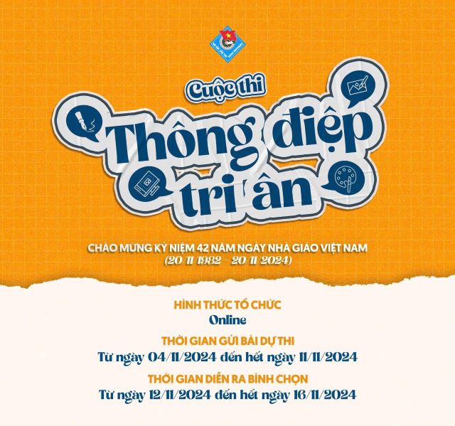 Hướng tới chào mừng kỷ niệm 42 năm Ngày Nhà giáo Việt Nam (20/11/1982 - 20/11/2024), Đoàn khoa KHXH&NV - Trường Đại học Cần Thơ tổ chức cuộc thi “Thông điệp Tri ân”. Cuộc thi nhằm khơi dậy sự sáng tạo trong mỗi sinh viên về lòng biết ơn Thầy Cô, gìn giữ nét văn hóa truyền thống "Tôn sư trọng đạo" của người Việt Nam. Đây là hoạt động tri thức lành mạnh, thú vị khuyến khích những ý tưởng sáng tạo, ứng dụng công nghệ thông tin của các bạn Đoàn viên, Thanh niên trong quá trình tạo ra ấn phẩm truyền thông, thiết kế video, sáng tác thơ văn,... và đây cũng là dịp sinh viên có cơ hội bày tỏ tâm tư, tình cảm gửi đến những người Thầy, người Cô của mình.