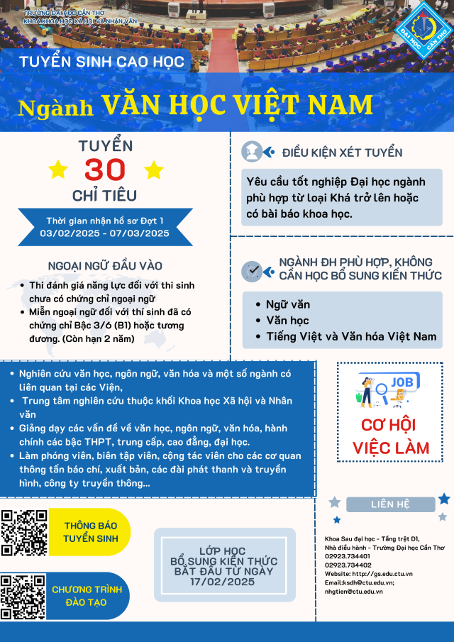 TUYỂN SINH THẠC SĨ NGÀNH VĂN HỌC VIỆT NAM ĐỢT 1.2025