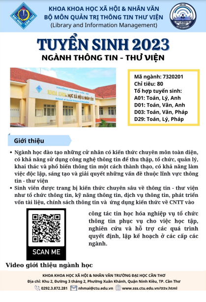 Nhằm khai thác ứng dụng các công nghệ liên quan đến AI, và cập nhật kiến ​​thức và kỹ năng số hóa các bộ sưu tập di sản văn hóa, Khoa Khoa học Xã hội và Nhân văn, Bộ môn Quản trị Thông tin Thư viện, và Trung tâm Học liệu sẽ phối hợp tổ chức hội thảo - tập huấn với chủ đề “Các công nghệ mới nổi và quản lý thư viện số” từ 03 – 09/3/2024.